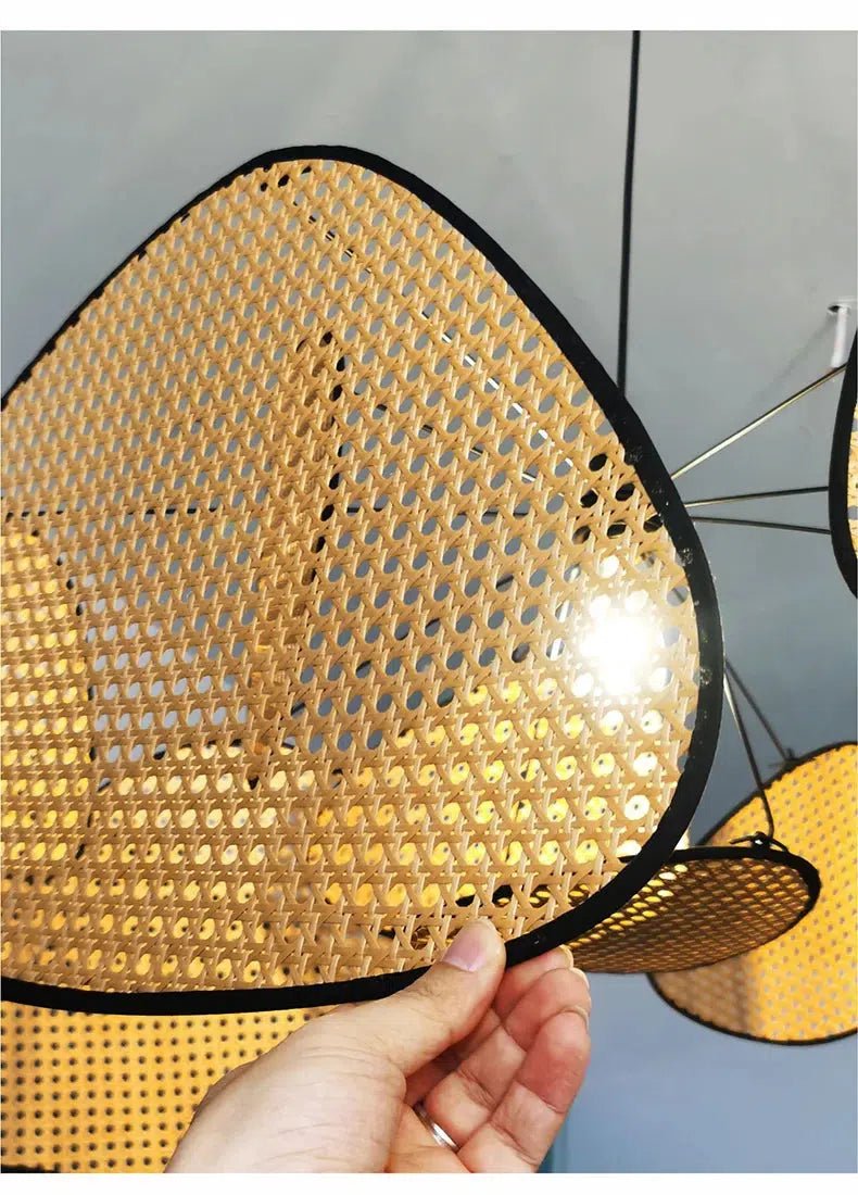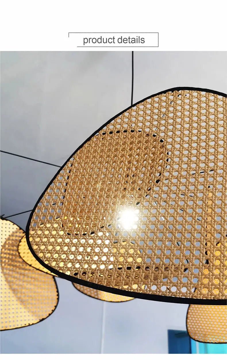Das kunstvolle Muster des Schirms erzeugt ein faszinierendes Licht- und Schattenspiel und streut das Licht sanft, wodurch eine warme und einladende Atmosphäre entsteht. Die detailreiche Rattanverarbeitung macht ihn zu einem rustikalen Meisterwerk, das sich harmonisch in jeden Raum einfügt.