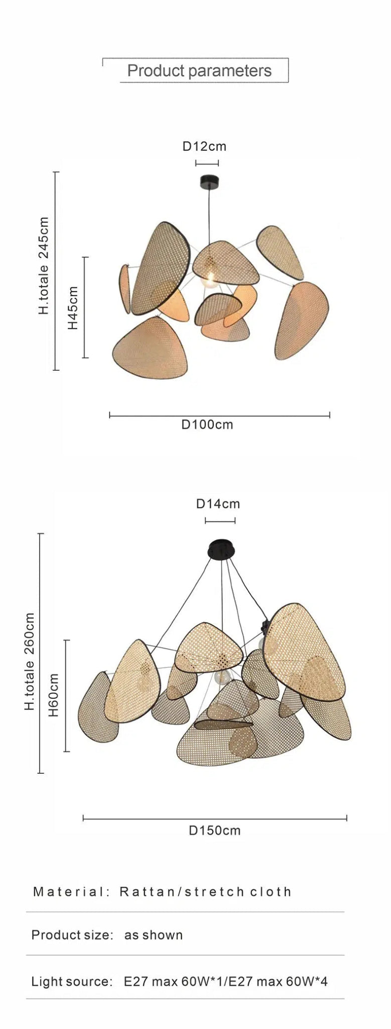 - Material: Handgewebtes Rattan oder weißes, gespanntes Tuch