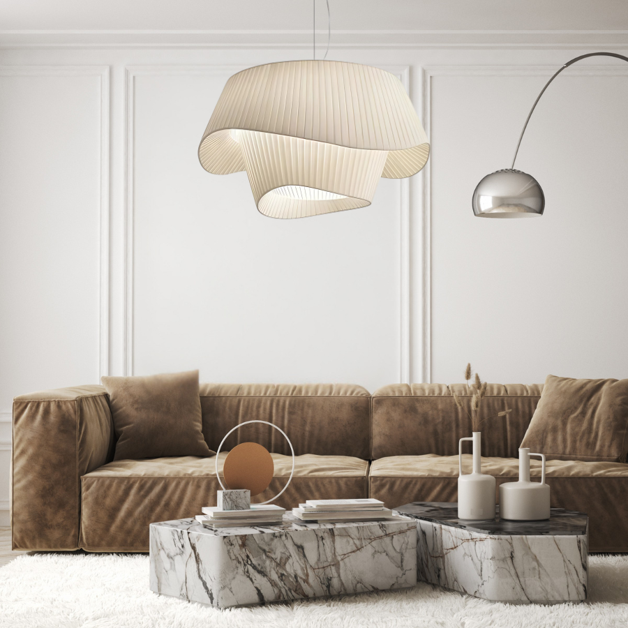 Noosa wird neu interpretiert skulpturale Pendelleuchten mit einem fließenden, plissierten Schirm, der sowohl strukturiert als auch lässig wirkt. Ausgewogene Lichtverteilung. Kücheninselbeleuchtung wo Klarheit und Komfort nebeneinander bestehen müssen, während größere Durchmesser Aufmerksamkeit erregen als moderne Esszimmerleuchte ohne überwältigende Sichtlinien. In kompakten Größen liest es sich wie ein minimalistische DeckenleuchteSie verleihen dem Raum Struktur, ohne ihn zu überladen. Unauffällige Aufhängung und schlichte Deckenbaldachine vereinfachen die Installation und ermöglichen kreative, gestaffelte Anordnungen über langen Theken oder eindrucksvolle Einzelabhängungen in doppelgeschossigen Räumen. Durchdachte Proportionen erlauben sowohl einzelne Akzente als auch vielschichtige Ensembles und passen sich mühelos an – von Studio-Apartments bis hin zu großzügigen, offenen Wohnkonzepten.