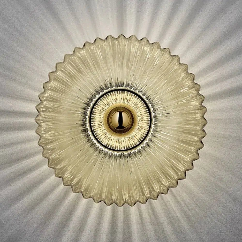 Das Design aus geriffeltem Glas erzeugt eine beruhigende und zugleich eindrucksvolle Optik. Ob im Wohnzimmer, Schlafzimmer oder Flur – diese Wandleuchte verwandelt gewöhnliche Räume in außergewöhnliche Orte.