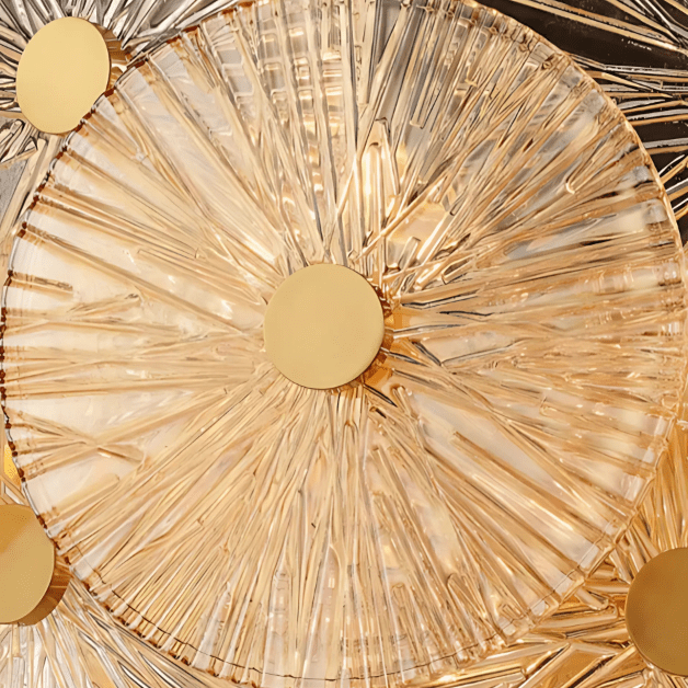 Τα στοιχεία από γυαλί με υφή δημιουργούν μια εκθαμβωτική εικόνα, παγιδεύοντας και διαθλώντας το φως για να προσθέσουν βάθος και λάμψη στον χώρο σας. Κάθε δίσκος είναι σχολαστικά τοποθετημένος για να σχηματίσει ένα αρμονικό σχέδιο που τραβάει το βλέμμα και αναδεικνύει την αισθητική κάθε δωματίου.