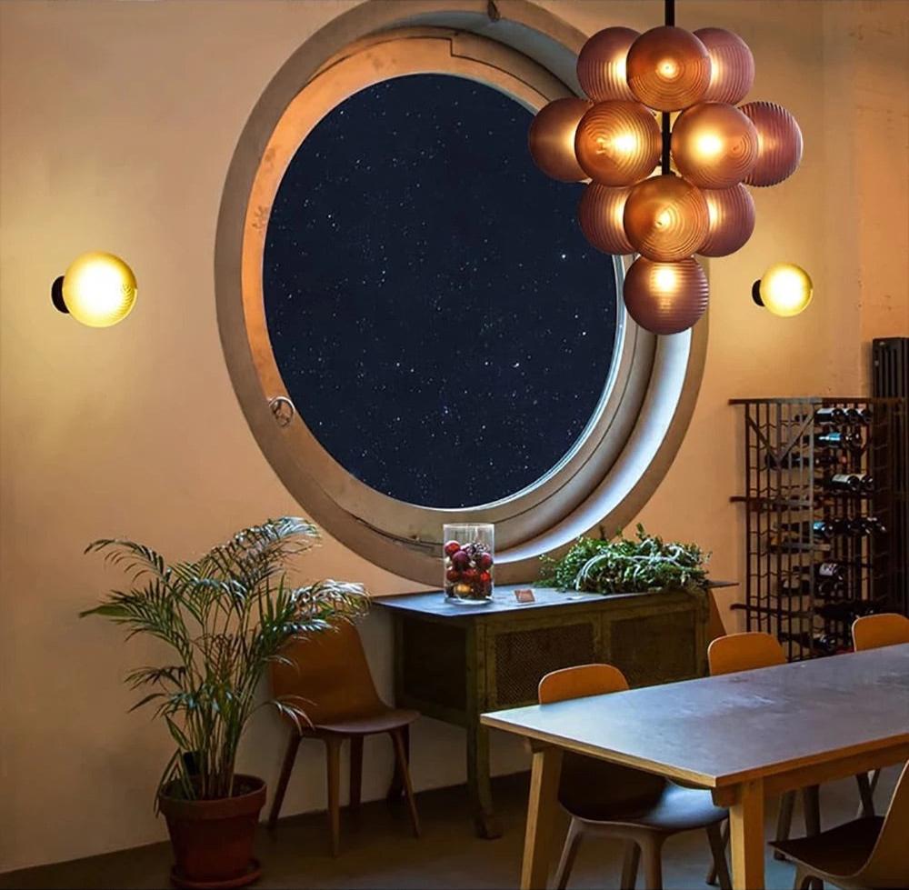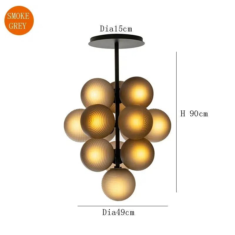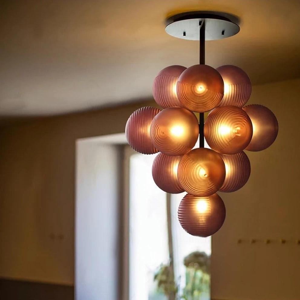 Con un llamativo conjunto de globos de vidrio en forma de uva, esta lámpara es una auténtica pieza llamativa.