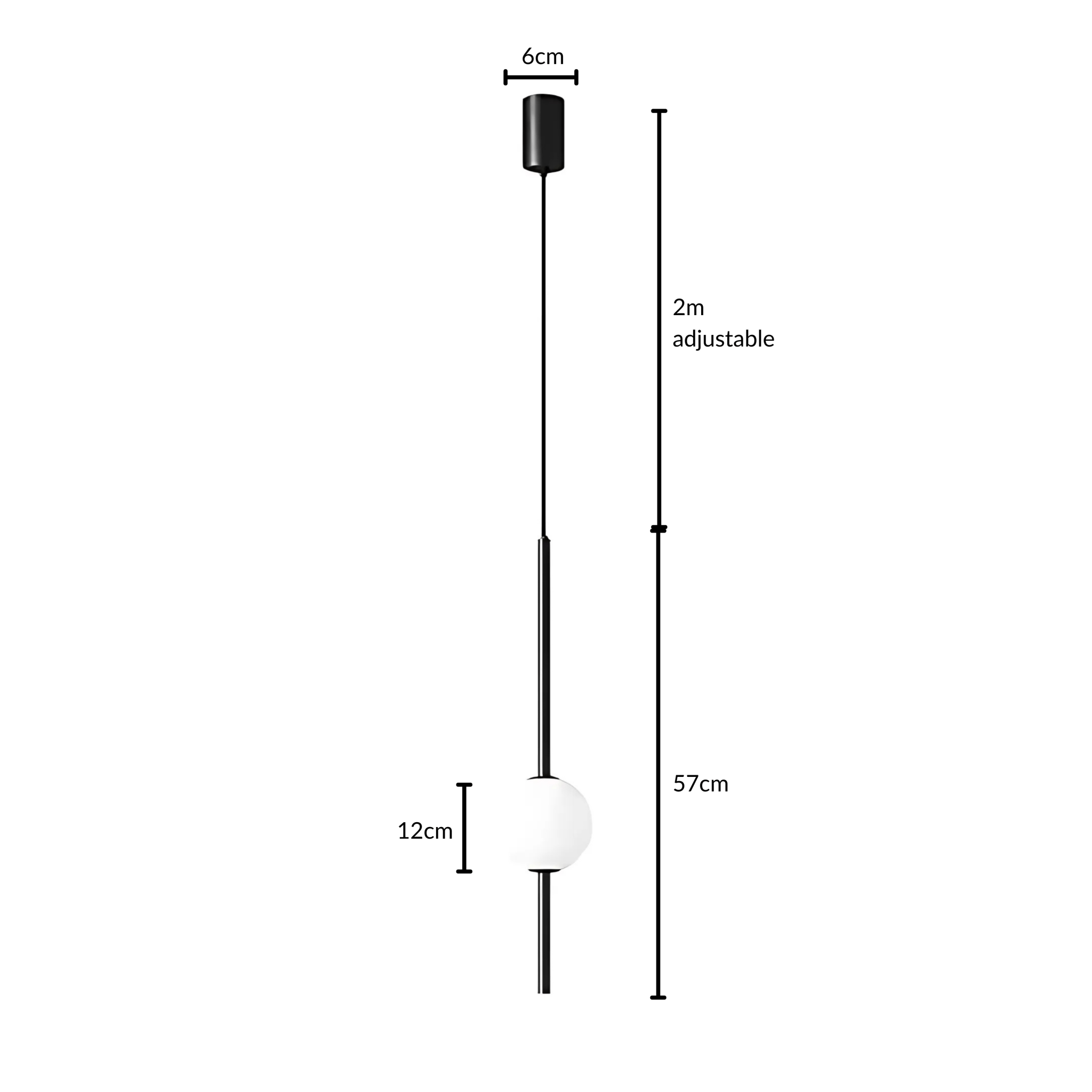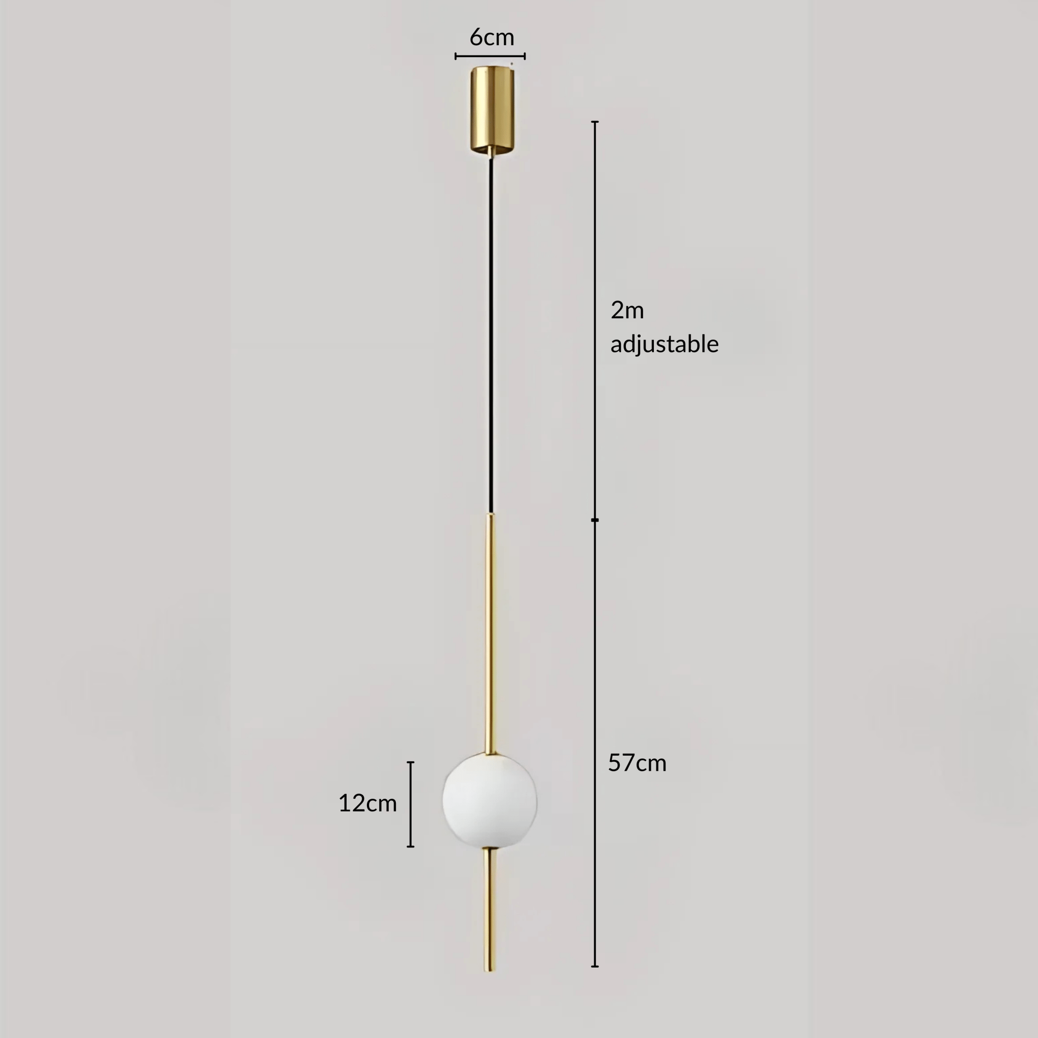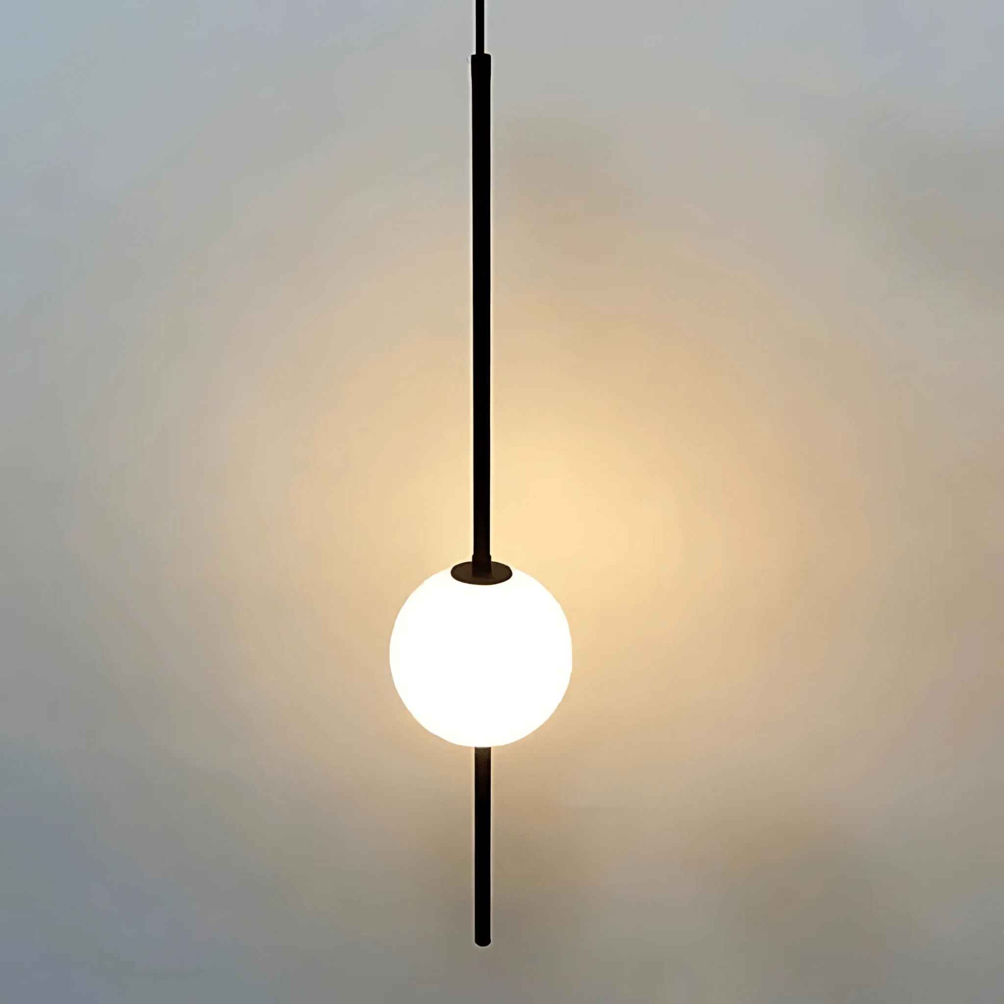 La luz suave y ambiental de la esfera aporta un brillo cálido y acogedor, mientras que las líneas limpias de la varilla añaden un toque arquitectónico refinado.
