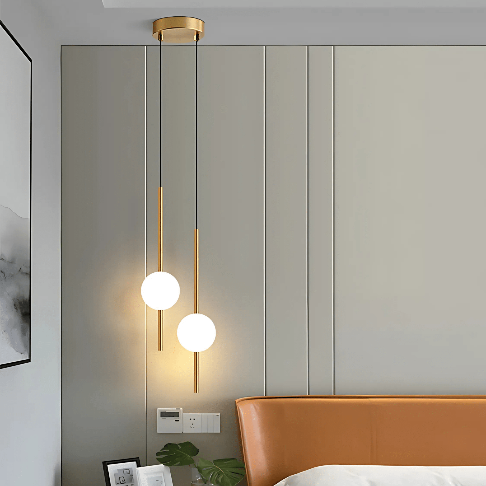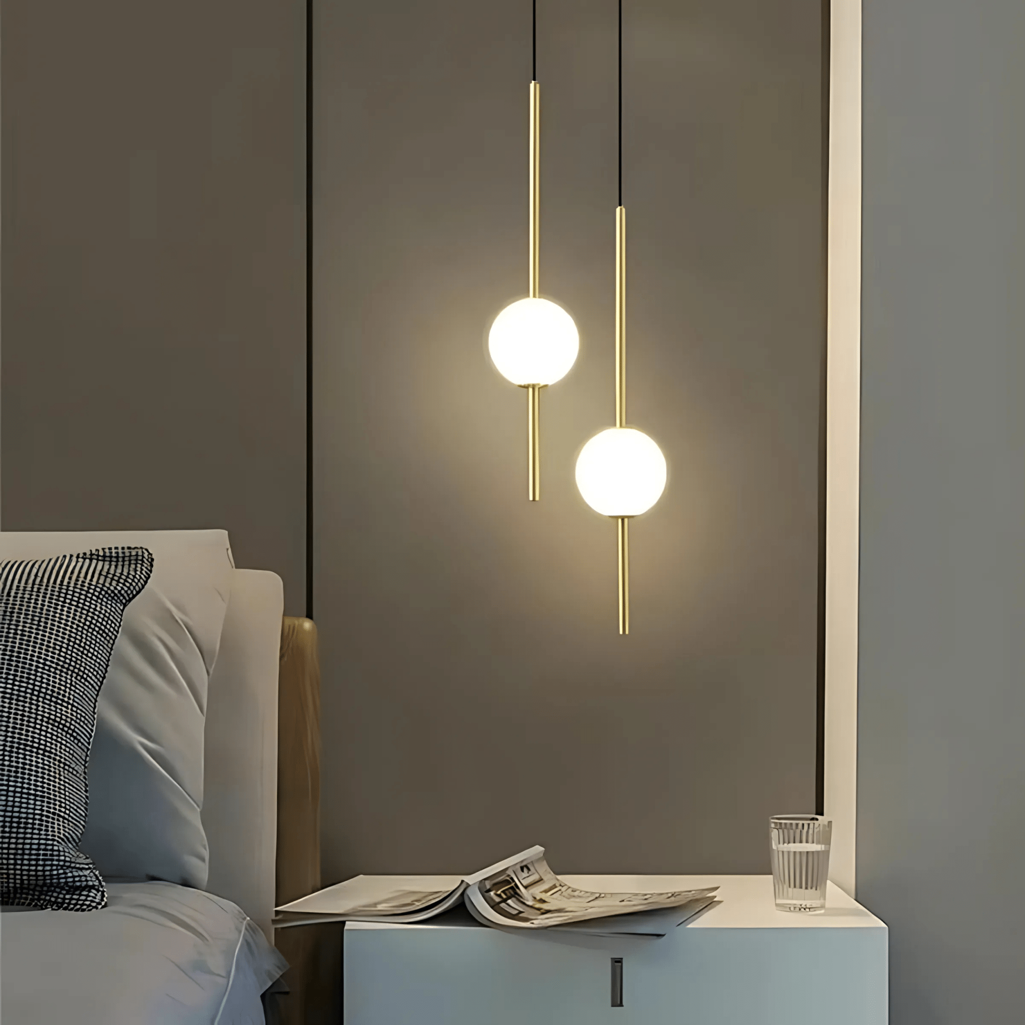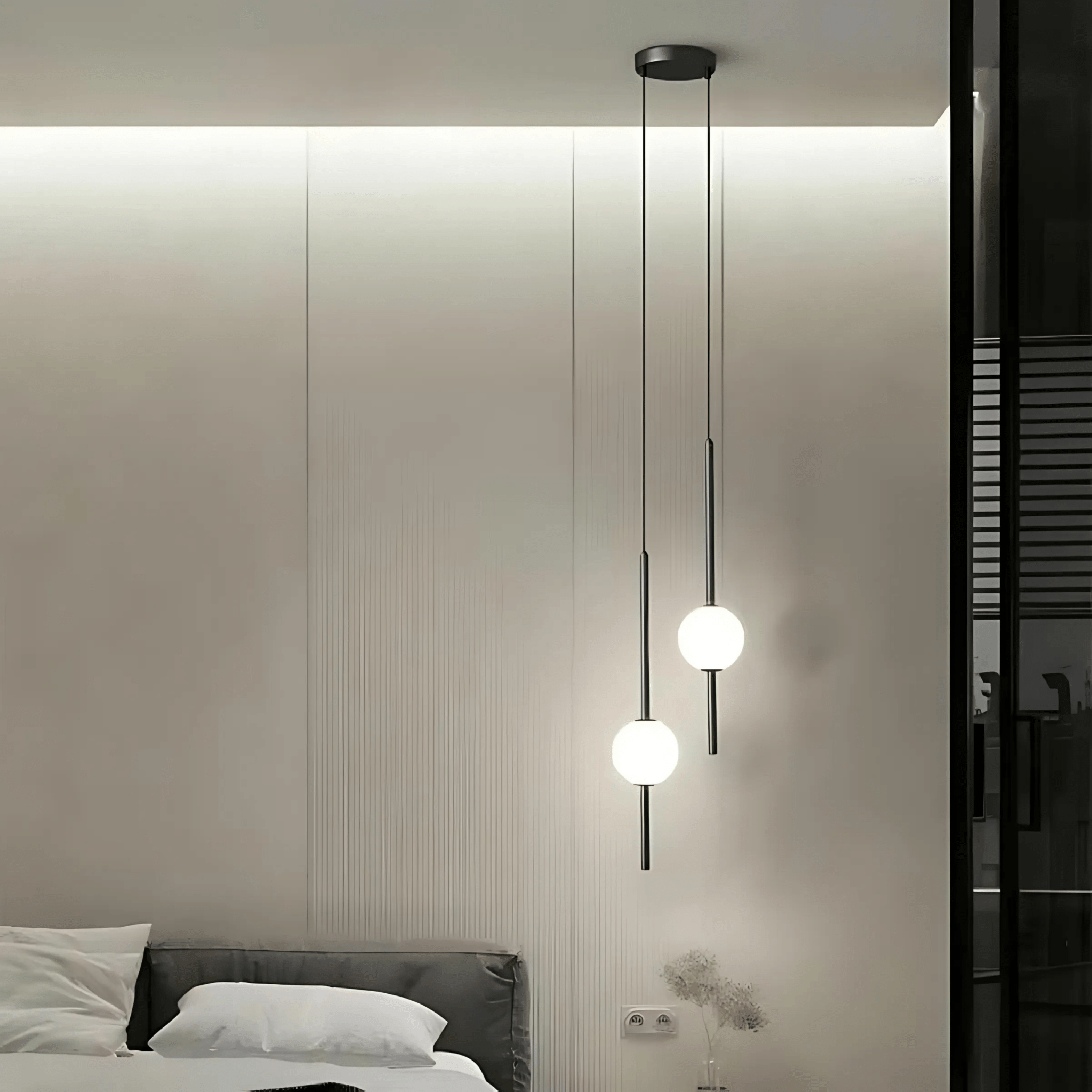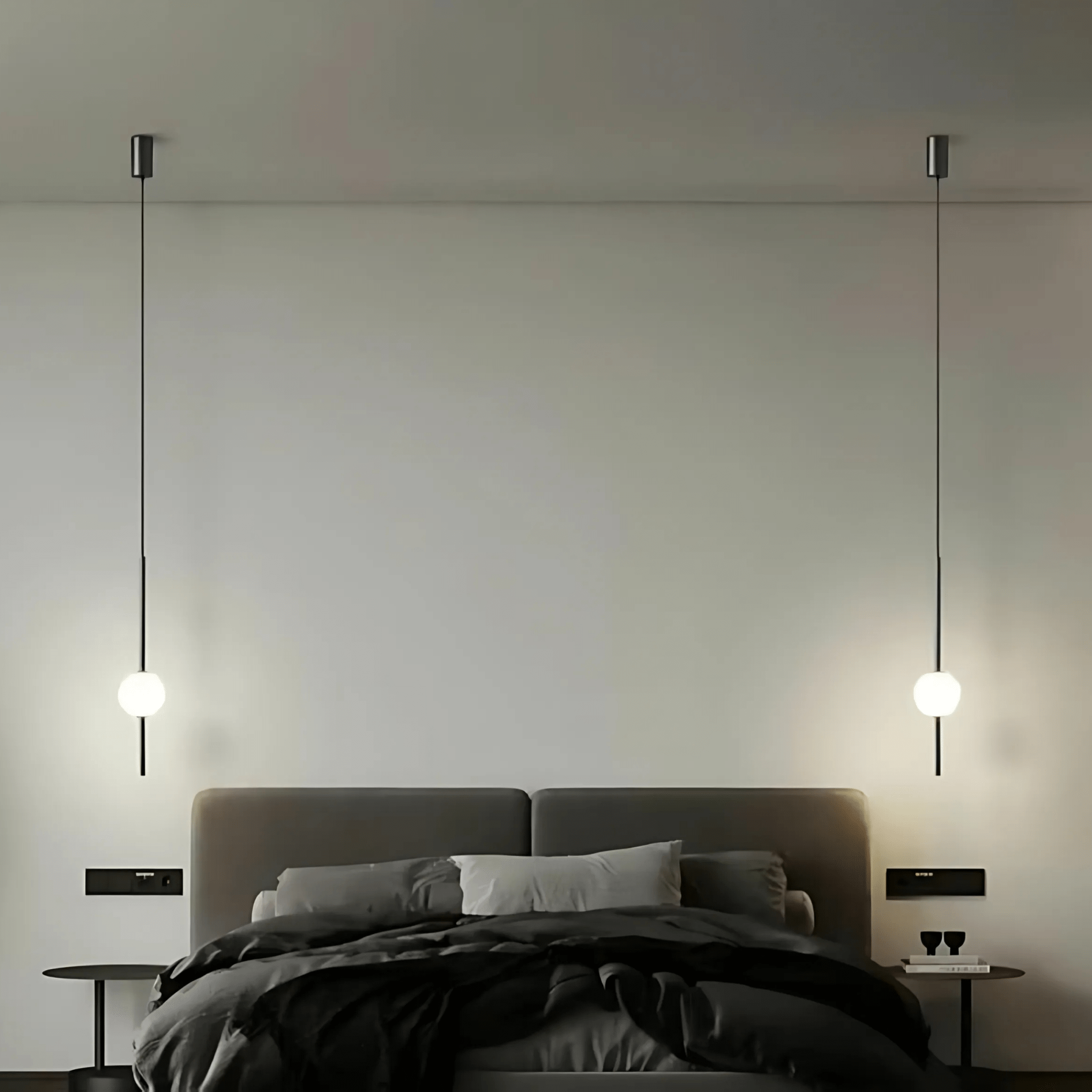 La luz suave y ambiental de la esfera aporta un brillo cálido y acogedor, mientras que las líneas limpias de la varilla añaden un toque arquitectónico refinado.