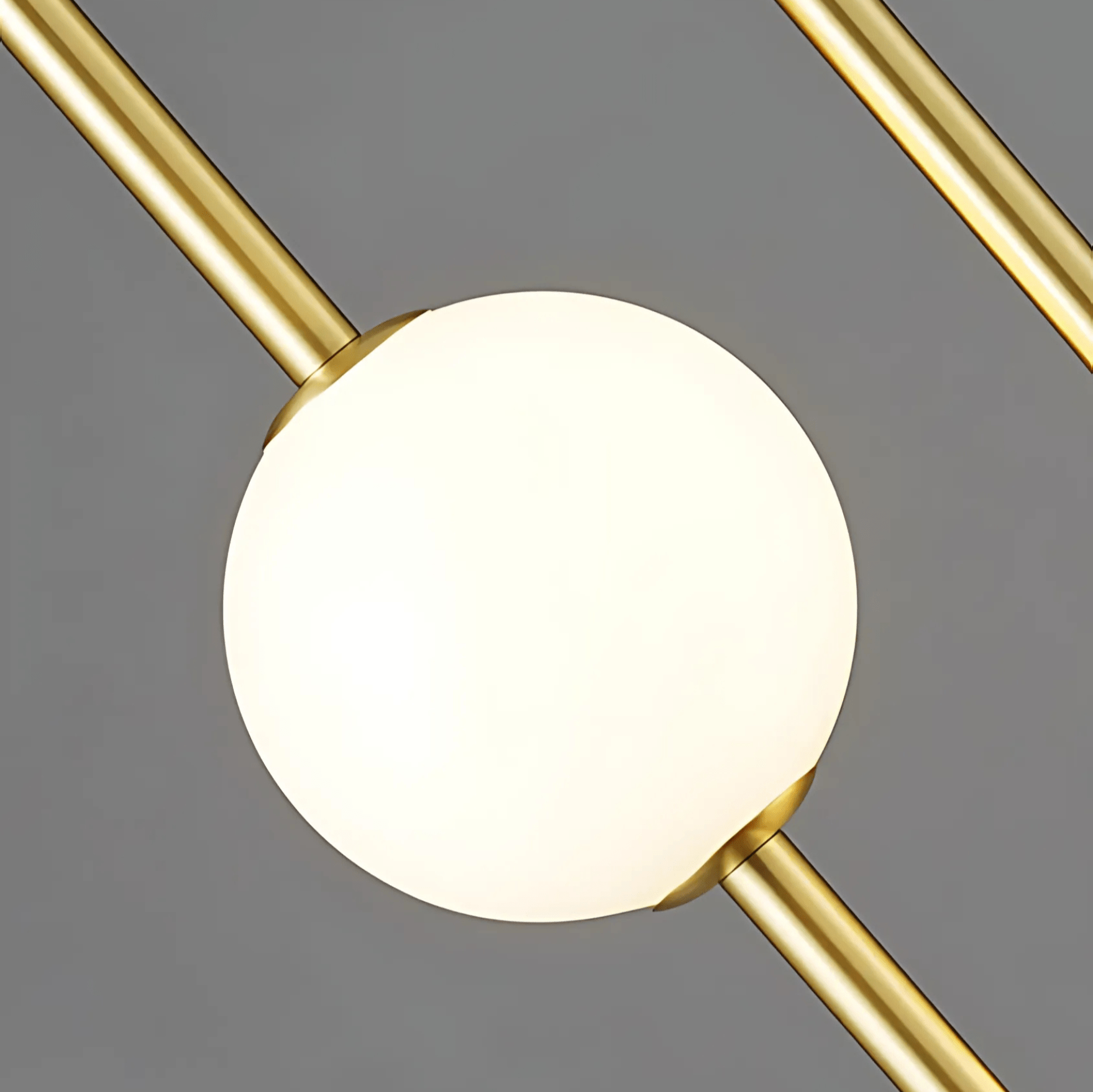 La lámpara colgante Link Collection encarna la esencia del minimalismo moderno con su estructura lineal y elegante y su difusor esférico central.