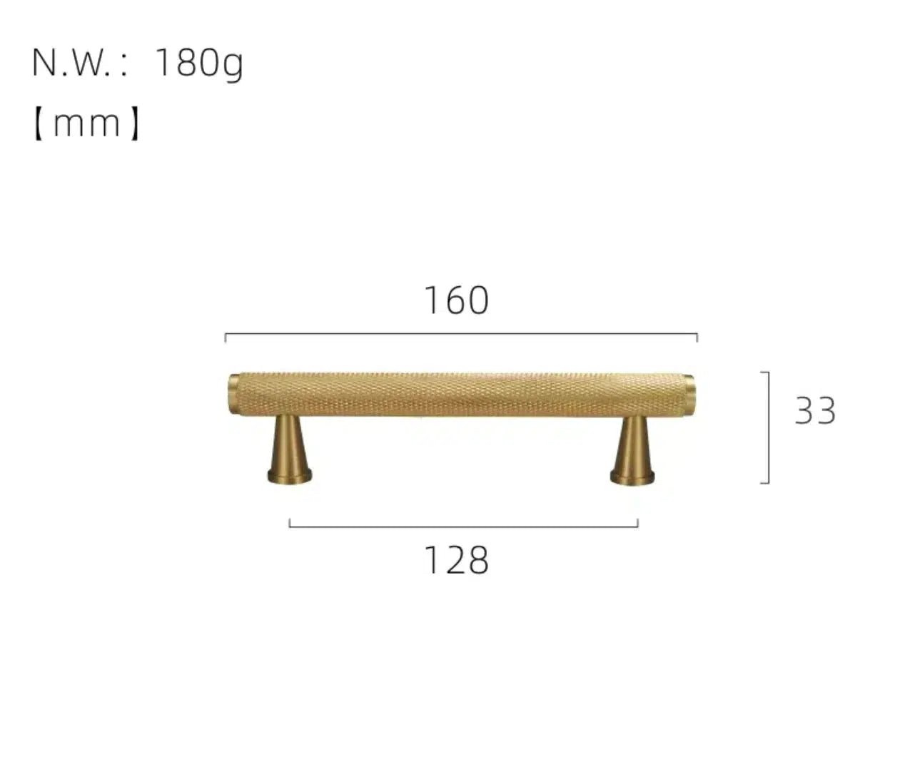 Les poignées moletées en laiton massif sont usinées avec expertise à partir de laiton massif et présentent une texture moletée unique qui ajoute une touche d'élégance industrielle à n'importe quel espace.