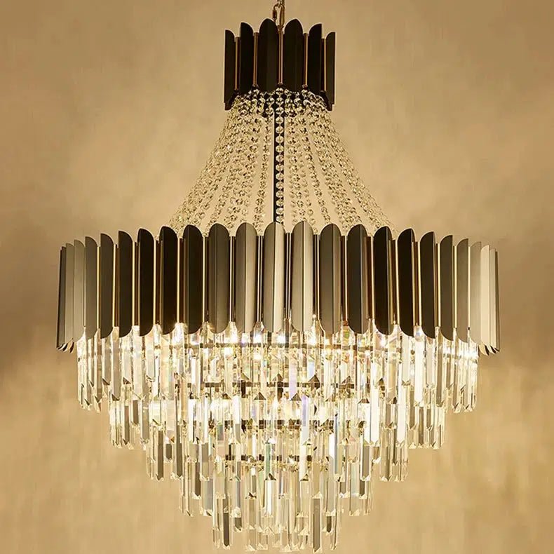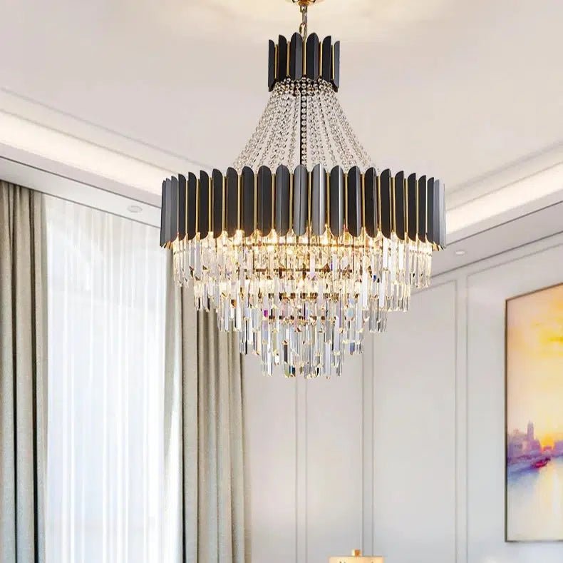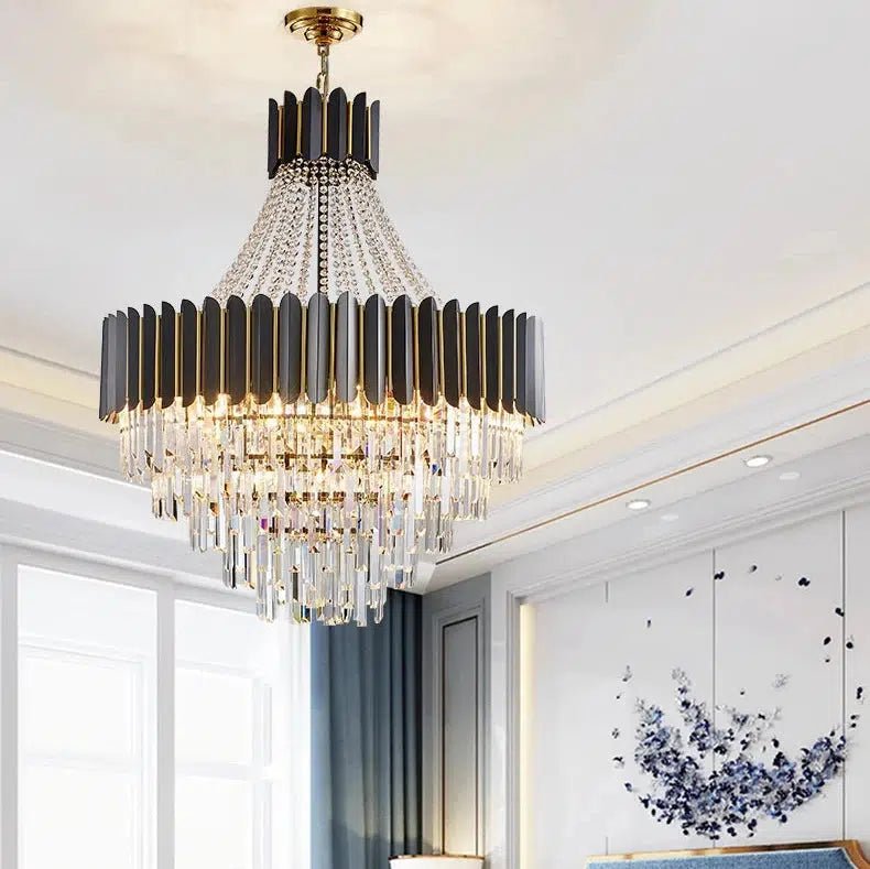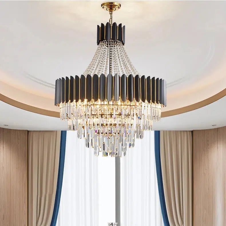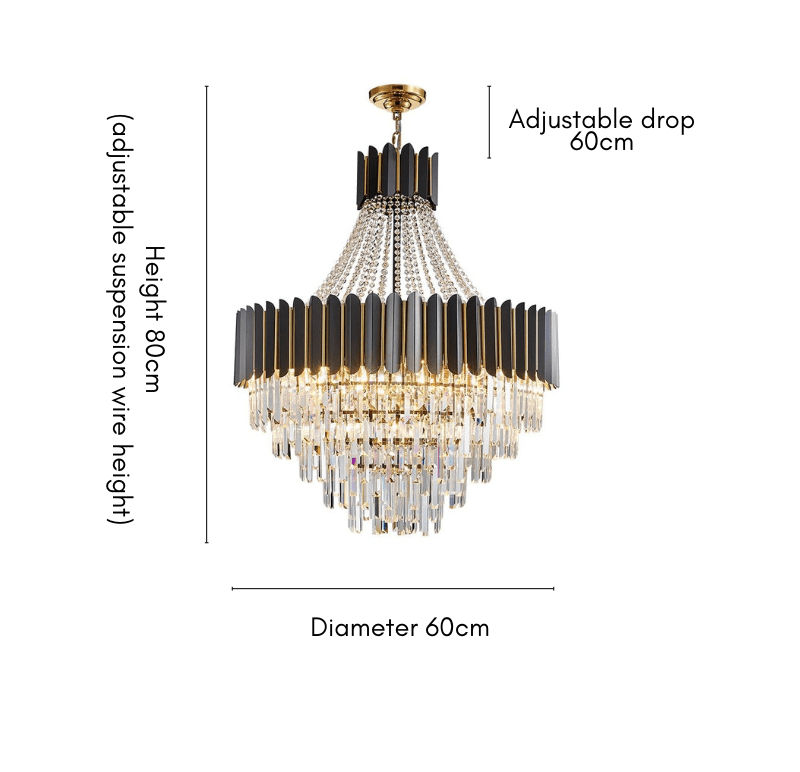 The Royal Oak Collection embodies timeless elegance and grandeur, perfect for those seeking to make a statement in their interior. Inspired by classic chandelier designs, this pendant light features a stunning arrangement of crystal elements paired with sleek black and gold accents.