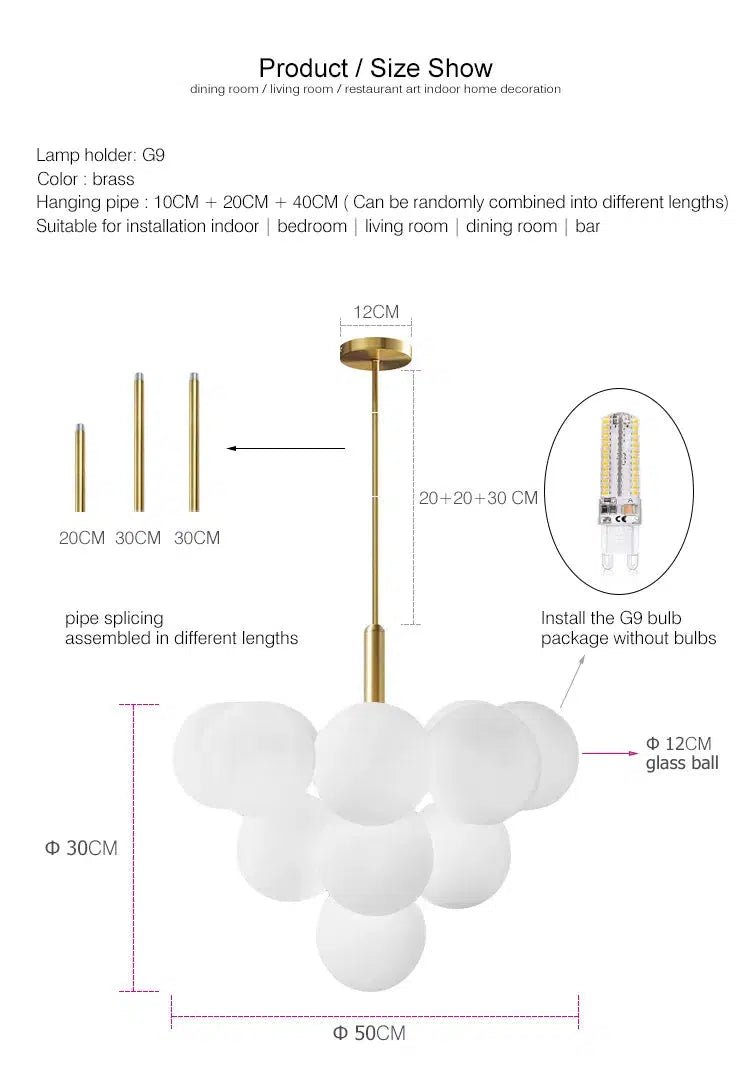 The frosted glass design bathes your space in a soft, diffused light, creating a delightful and warm ambiance. Witness the mesmerising glow as the glass balls emit beautiful light, infusing a  touch of luxury into your decor.